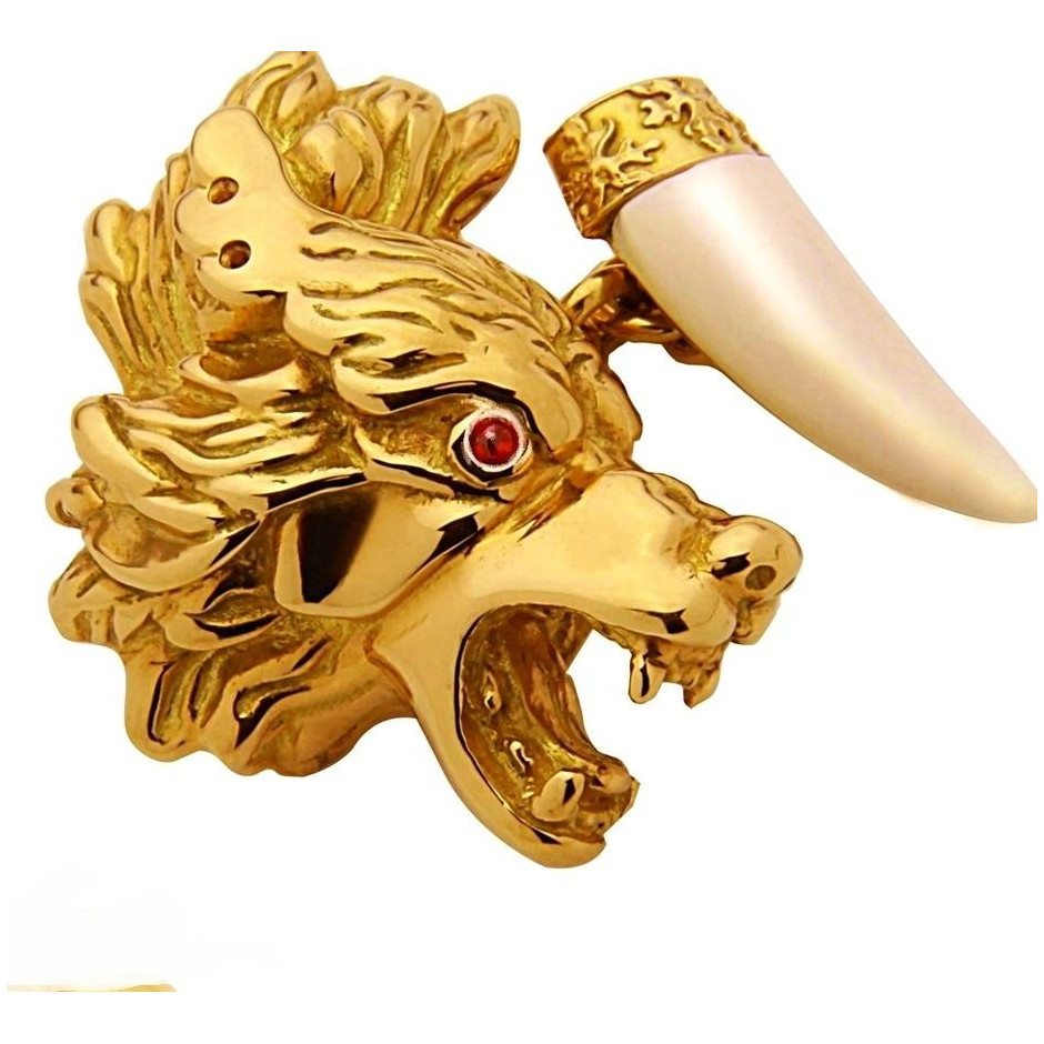 Greg Daniloff collection include hand carved stone sculptures with 18{875} Carat Gold, Platinum, diamonds, sapphires, rubies, emeralds, carved horn and rare stones. Because of this very complex process of production, availability of each style is limited. This pair of brand new gold wolf cufflinks are great collectible items or make perfect gift.