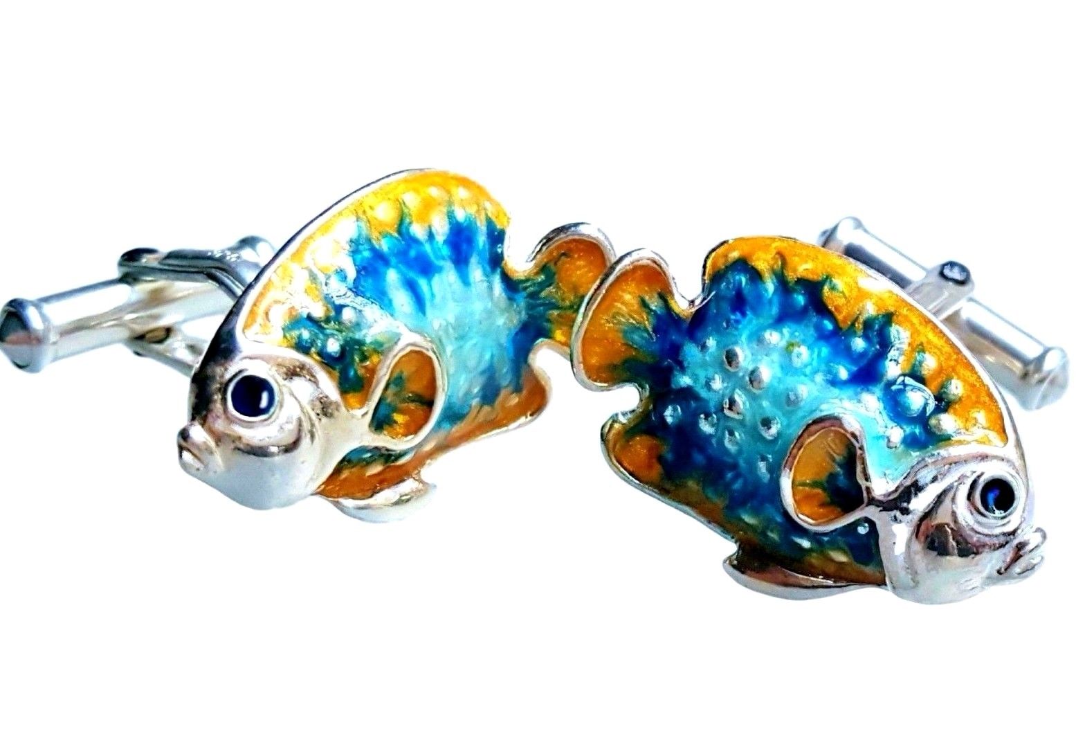 Enamel and sterling silver hand painted tropical fish cufflinks.